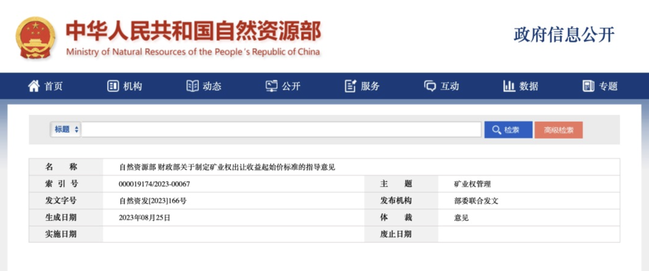 重要文件!礦業(yè)權(quán)出讓收益起始價標(biāo)準(zhǔn)發(fā)布